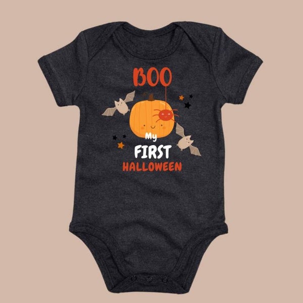Celebrate your little one’s very first Halloween with our adorable Infant Halloween Vest or Romper! This charming garment features the playful word “Boo” alongside the heartwarming phrase “My First Halloween.” Decorated with a cute pumpkin, a friendly spider, and whimsical bats, it’s the perfect outfit to make your baby’s first Halloween unforgettable.