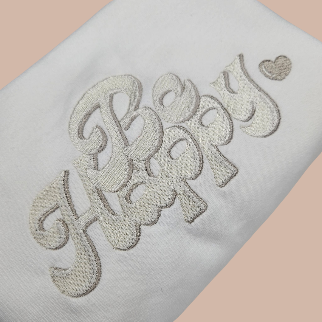 Wrap yourself in luxury and positivity with our exclusive "Be Happy" Embroidered Sweater/Hoodie. The playful yet chic embroidery of the phrase "Be Happy" steals the spotlight, rendered in a bold, funky font that exudes energy. The expertly stitched shadowing behind each letter adds a unique 3D effect, making the design pop with personality and depth.