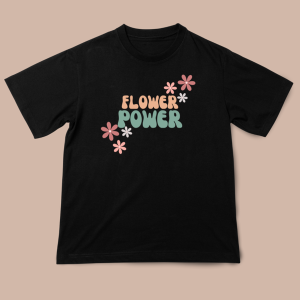Add a touch of whimsy to your wardrobe with our "Flower Power" printed t-shirt! Featuring a charming bubble font adorned with delicate little flowers, this tee radiates retro flair and playful energy.