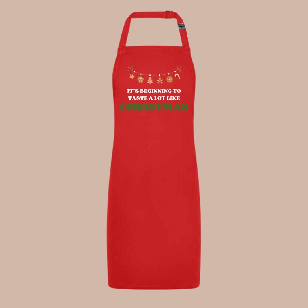 Get your little chef ready for the festive season with our charming Christmas printed apron! Adorned with the delightful phrase "It's Beginning to Look a Lot Like Christmas," this apron features a whimsical gingerbread garland that adds a touch of festive cheer.