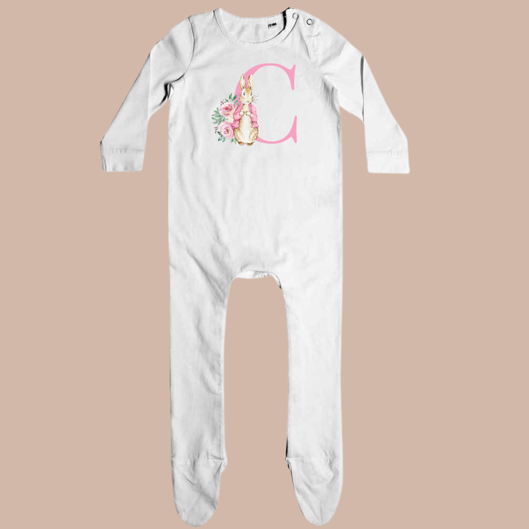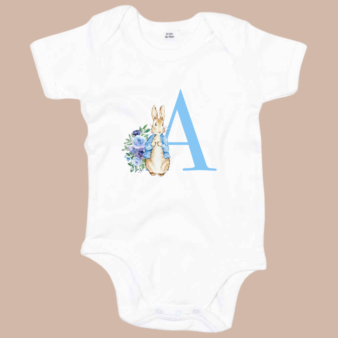 Rabbit Initial (Blue or Pink) - Infant Printed Personalised Easter Vest or Sleepsuit